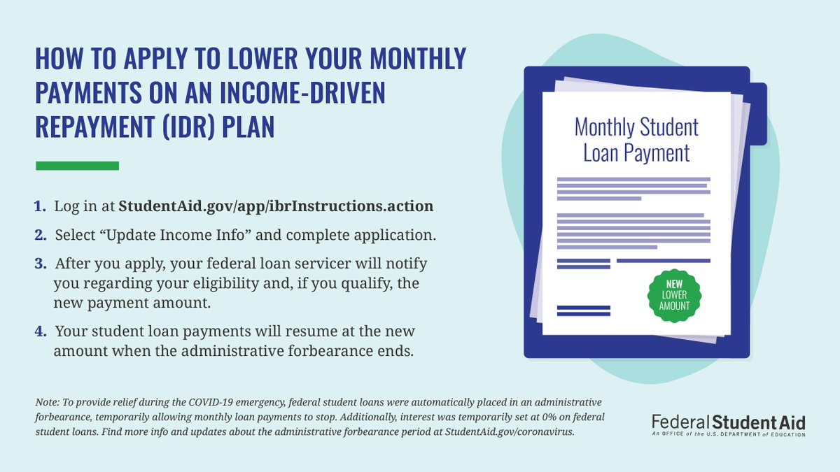 If you need to make lower monthly payments or if your outstanding federal student loan debt represents a significant portion of your annual income one of the following income driven plans may be right for you. The department of education is committed to providing electronic and information technologies that are accessible to individuals with disabilities by meeting or exceeding the requirements of section 508 of the rehabilitation act 29 u s c 794d. Set your goal and then find a suggested plan that could help you achieve your repayment goal. Some offer payments as low as 0 per month.